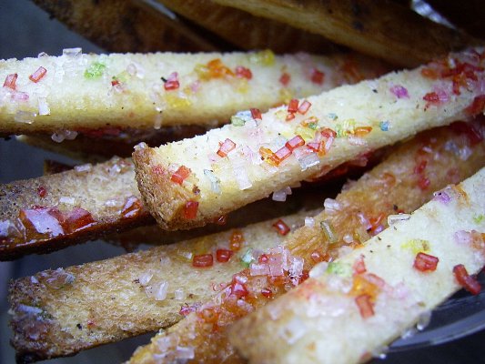 かわいくて美味しい、食パンを揚げてカラフルな砂糖をかけたものです。ほんのりシナモン風味。