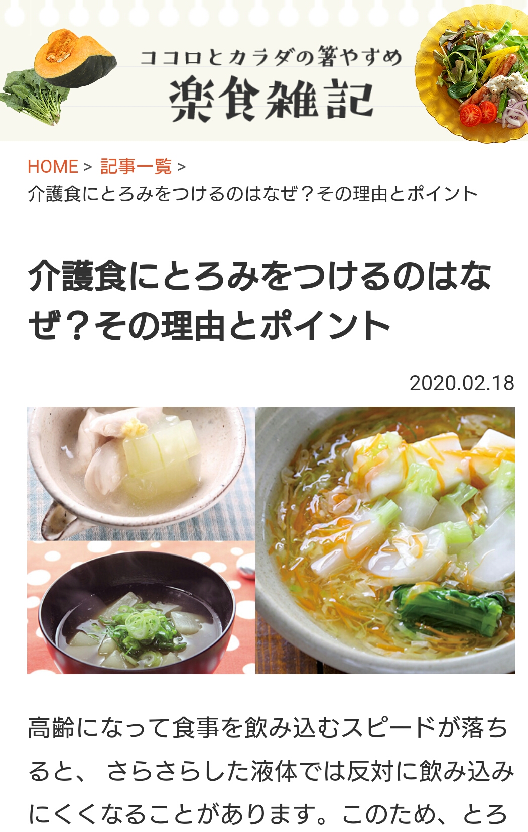 ボブとアンジー「ココロとからだの箸やすめ~楽食雑記」に、介護食のコラムを一部掲載しております。今後も継続して掲載予定です。