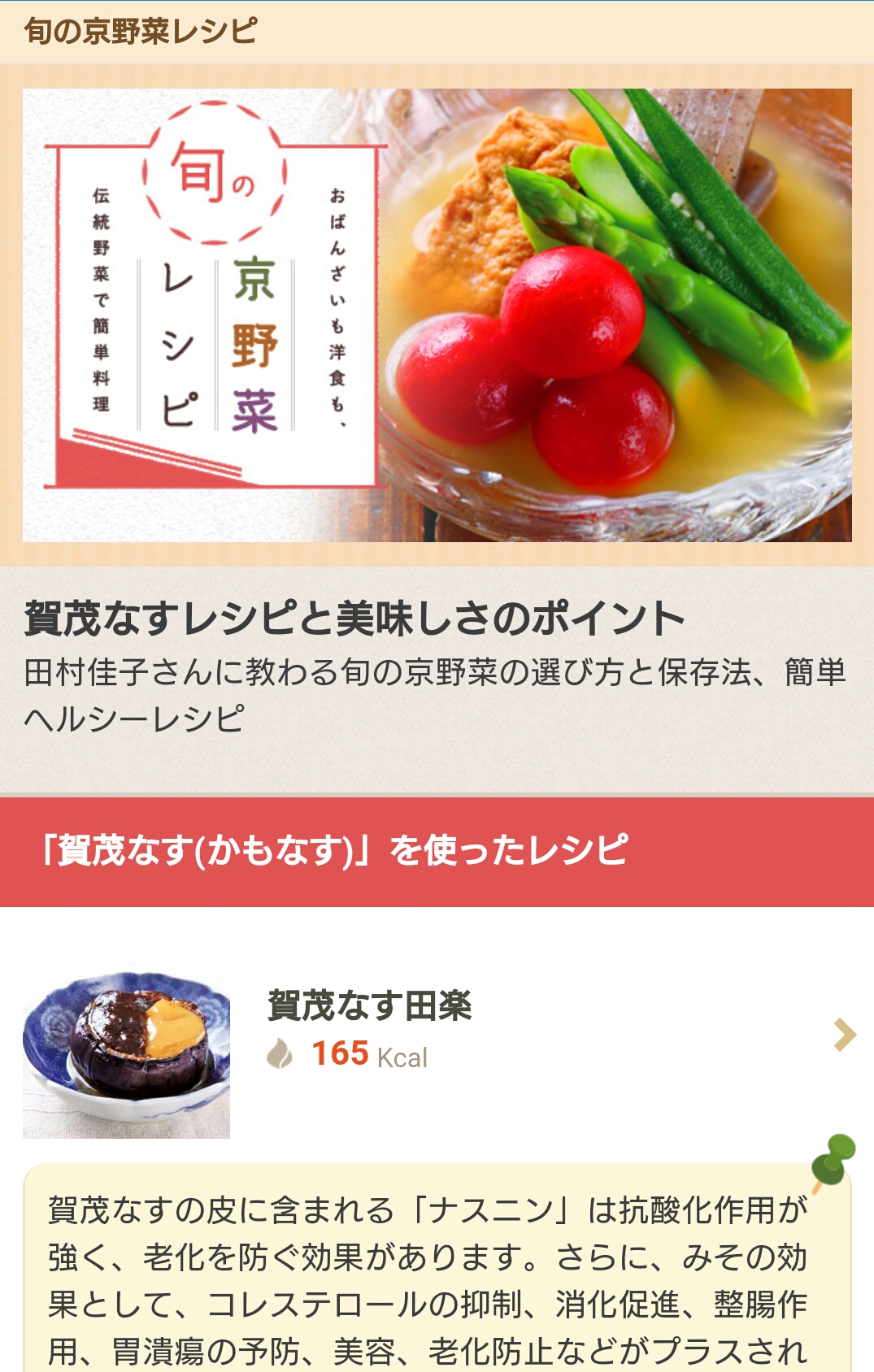 加茂茄子といえば、とろとろに焼いた田楽が思い浮かびますが、他にも楽しみかたがあります。是非、作ってみてください。普通の茄子でも楽しめますのでおすすめです。京野菜も時期になればよかったら楽しんで。4品のレシピがご覧いただけます。食材の詳細やコラムは会員有料です。