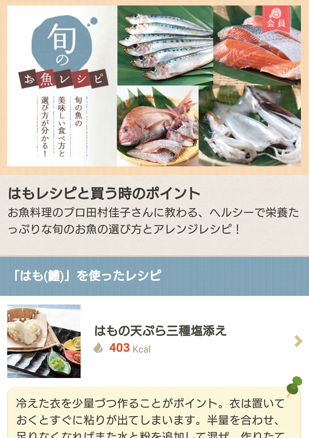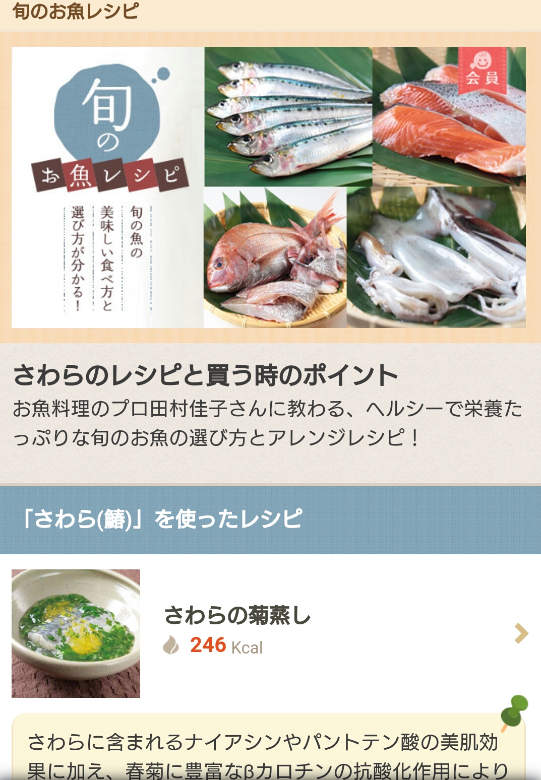 鮮度の選び方や下処理のポイント、保存の仕方、栄養価や効能については会員有料でご覧いただけます。もちろん、レシピは無料でお楽しみください。おうちで魚を楽しんでください。