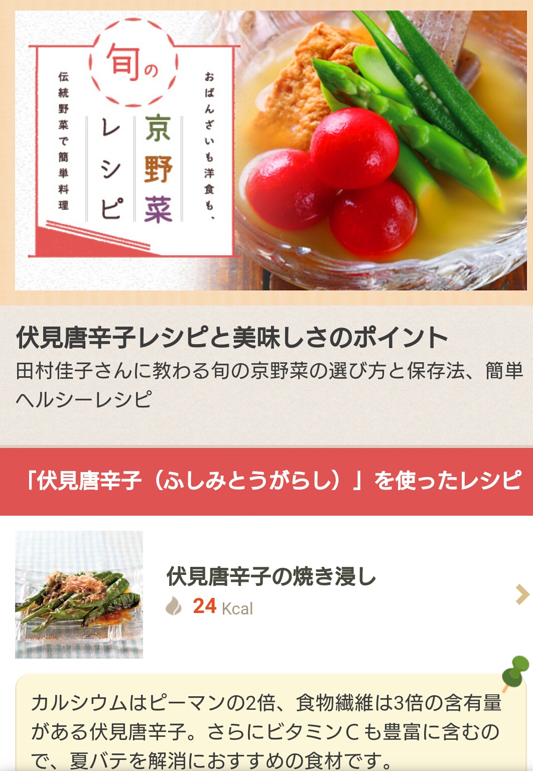 伏見唐辛子は焼いてそのまま食べるのが大好きですが、レパートリーを楽しむのもいいですよ。是非、作ってみてください。普通の甘唐辛子やピーマンでも楽しめますのでおすすめです。京野菜も時期になればよかったら楽しんで。4品のレシピがご覧いただけます。食材の詳細やコラムは会員有料です。