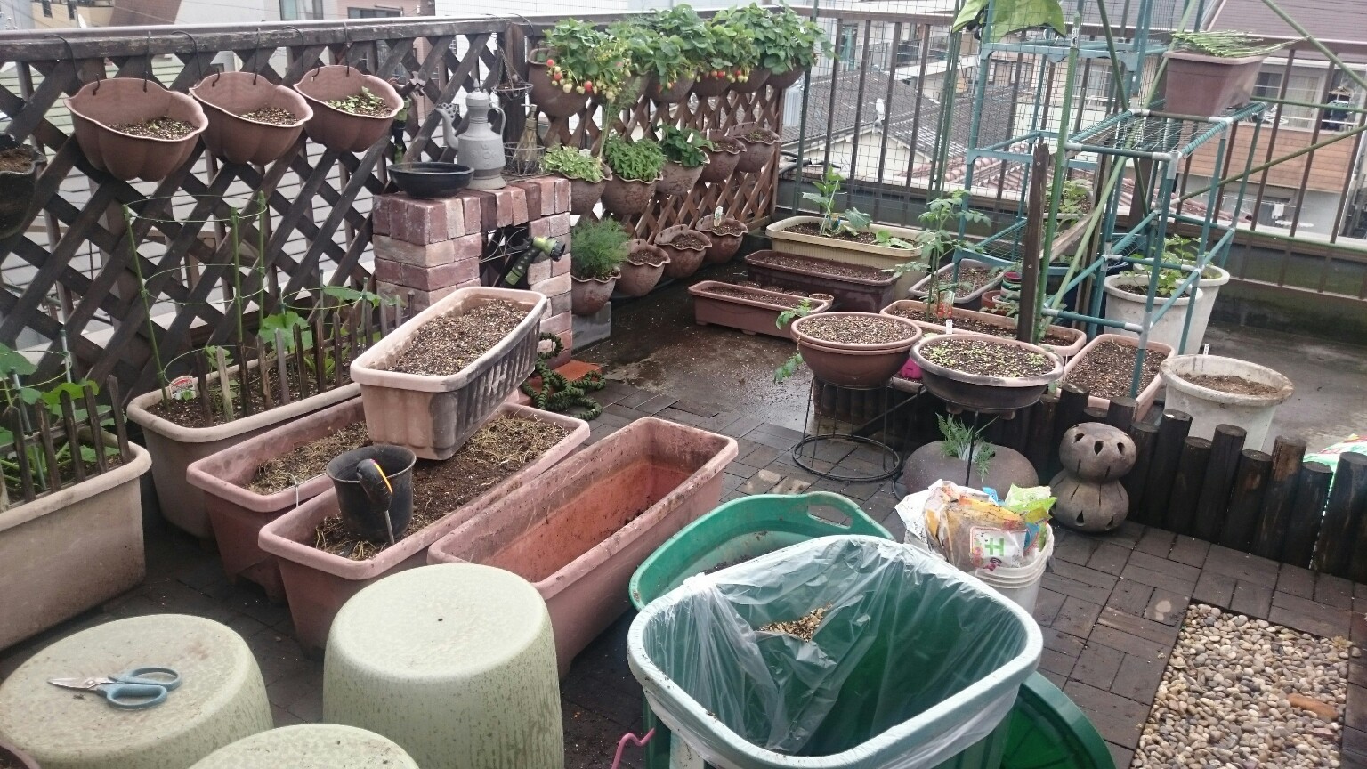 プランター菜園なのですが、毎年土を再生させ、プランターを一個づつ洗っています。これが大変。力仕事で腰がいたくなっています。怖いことに、ナメクジが沢山隠れているので、取り除かないと、植えた苗が食べられてしまうんです。
