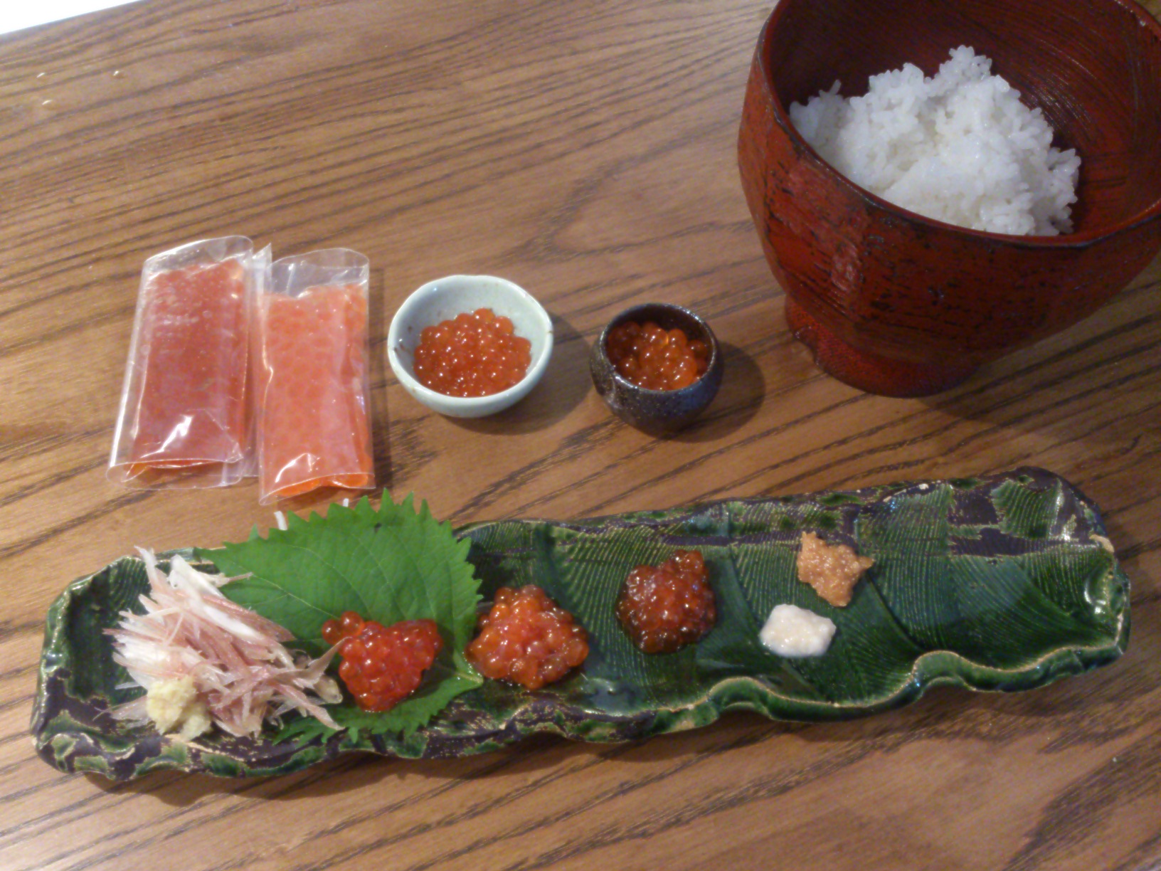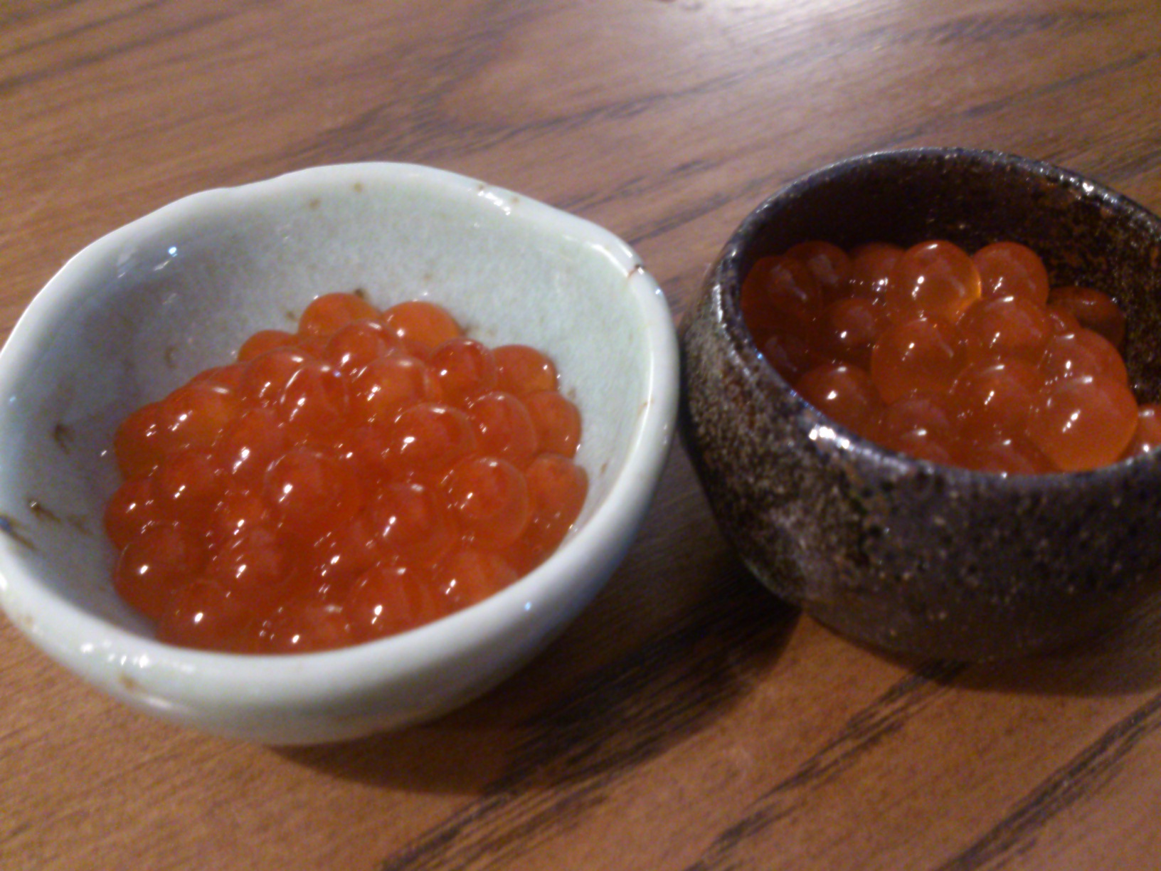 活車海老と冷凍ブラックタイガー、普通の芋と安納芋、鱒子と北海道産生いくら、活けの金目鯛と冷凍赤魚、北海道産黒豆と丹波の黒豆などなど。