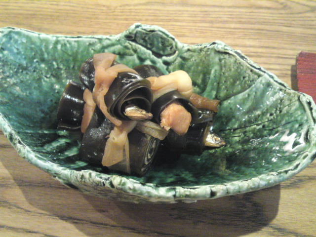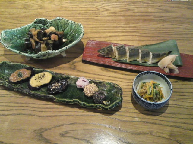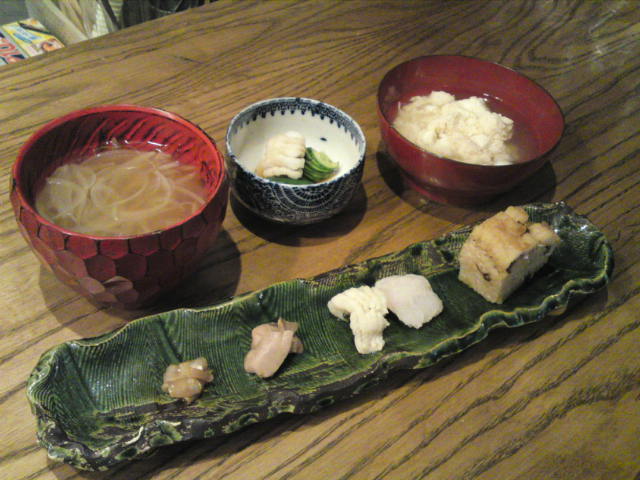 お料理は先付け三種盛りから始まり、珍味八寸、熱物八寸、香の物盛り合わせ。他にも少し。