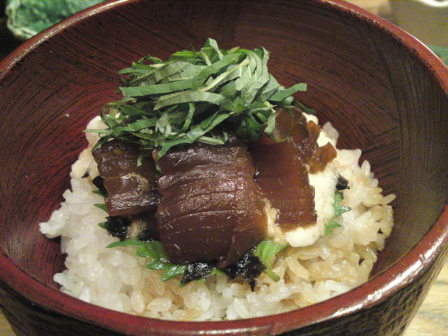 剥き身などの筋の多いところは火にかけて、照り焼き・漬け揚げに。筋の少ない剥き身は生のまま、タルタルや味噌和えに。刺身の冊は漬けのとろろ丼、ねぎま鍋、そして一番のおすすめ「パストラミ風マグロ」に!これは胡椒のたっぷり効いた生ハムみたいに仕上がります。保存も利き、サラダでもおつまみにも何でも利用できますよ。
