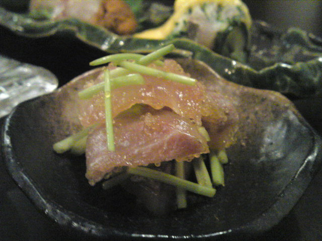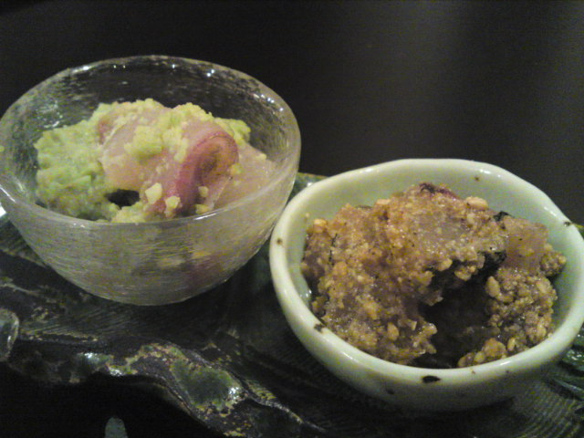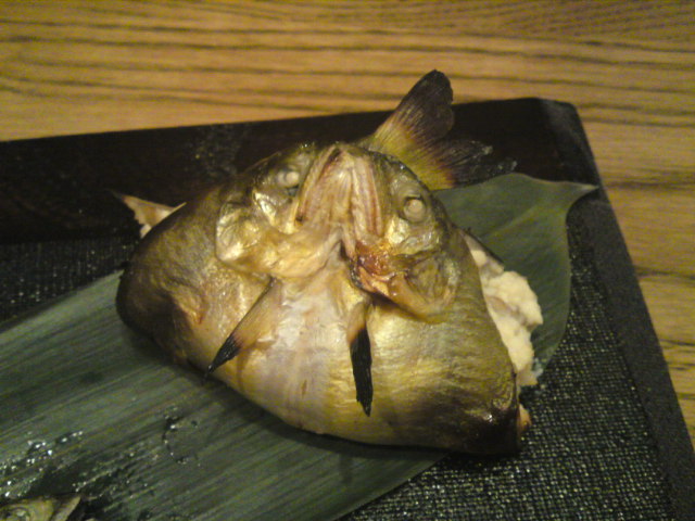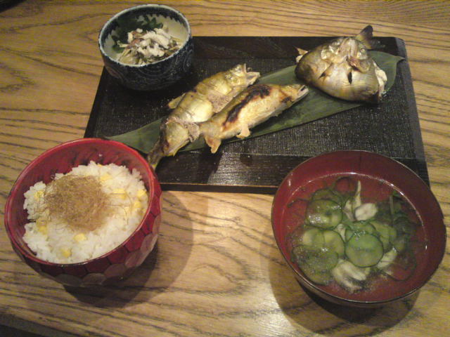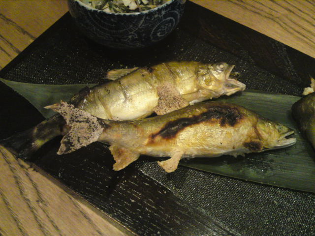 鮎の踊り焼き、その向こうに見えるのはうるか焼き。