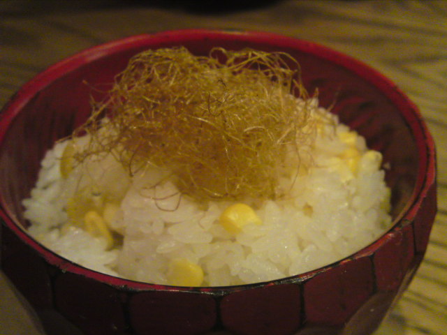コツを抑えてひと手間かけたトウモロコシご飯は驚きの味です。トウモロコシのひげも揚げてトッピングしています。
