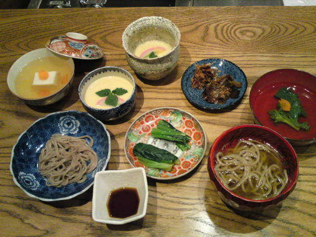 美味しく出来たお出しで吸い物とおひたし・茶碗蒸しも作ります。”蕎麦つゆ"も作るので、蕎麦を湯がいて食べてみます。
