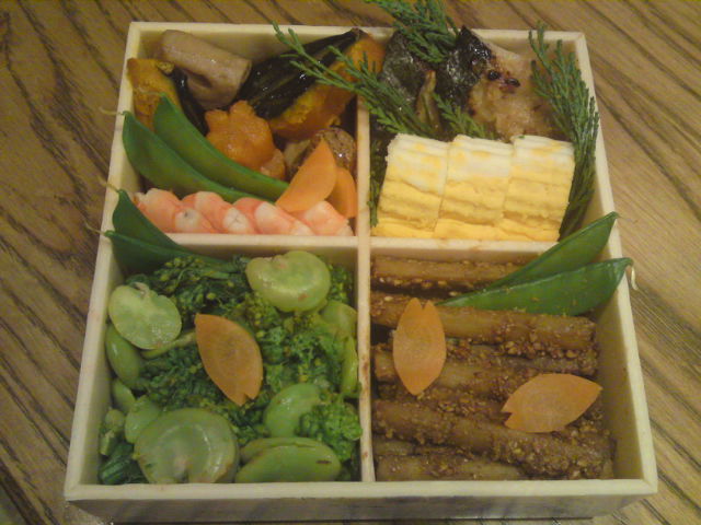 すでに3月には梅も開花し、「花見月」とも言われます。4月まで待たなくてもどんどん使ってください。お持ち帰りいただいた折詰は当日、翌日にお出かけにもっていっても大丈夫ですよ。ひと足早いお花見弁当。