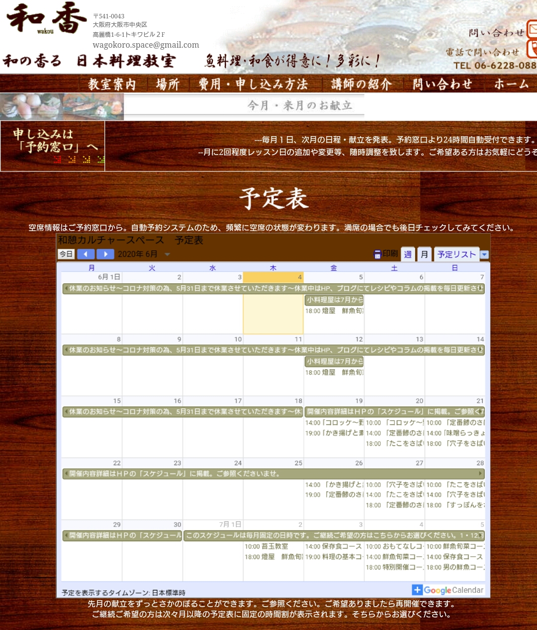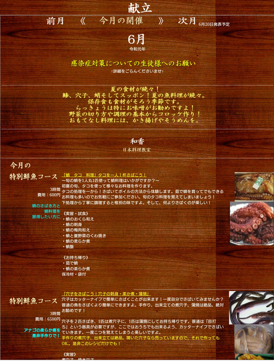 大阪の日本料理教室「和香wakou」の和食献立や写真を携帯でも公開!さばき方の動画も配信!
