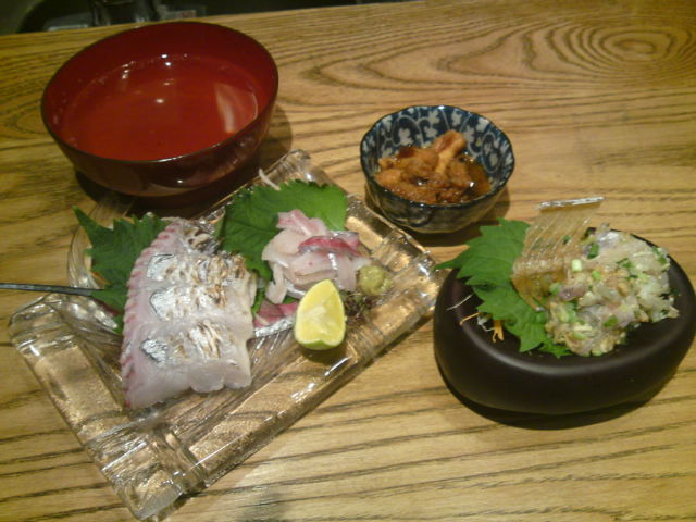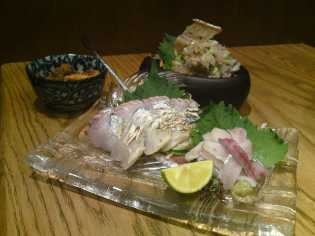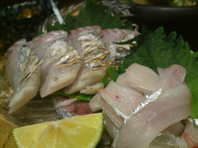 刺身で…焼いて…出来立ての田楽味噌をつけて…。