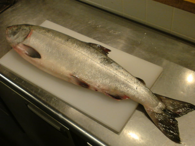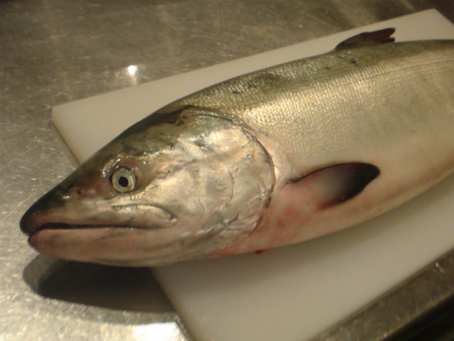 銀鮭の全長は70~100cmで、20kgくらいです。銀鮭は北海道以北からアラスカまで分布しています。銀鮭の産卵期は10月で、日本の河川にはほとんど上がってきません。近年はチリ南部のフィヨルドで養殖された銀鮭が輸入されています。銀鮭の腹部は銀白色で、背部が青く、淡い黒点が多数見られます。銀鮭の肉はうすいピンク色です。