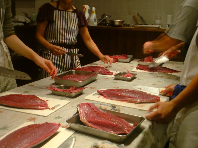 巨大な1匹をみんなの前でさばいて、切り分けていくのに少々どきどきしてしまいました。