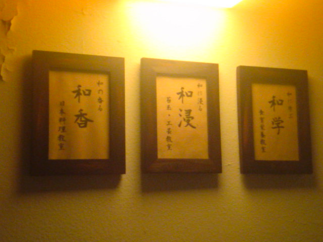 その下に今日は、それぞれの教室の看板を吊り下げました。