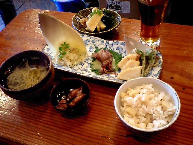 魚がメインの日本料理の教室をしておりますが、毎日教室のようなフルコースを全て作っているわけではありません。大抵は数品…さらに手を抜いて作ったり、外食したり。時にはこんなご飯もあり。