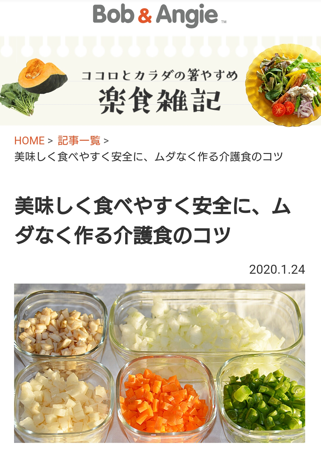 ボブとアンジー「ココロとからだの箸やすめ~楽食雑記」に、介護食のコラムを一部掲載しております。今後も継続して掲載予定です。